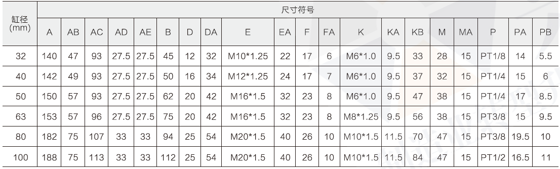 標(biāo)準(zhǔn)氣缸尺寸參數(shù)