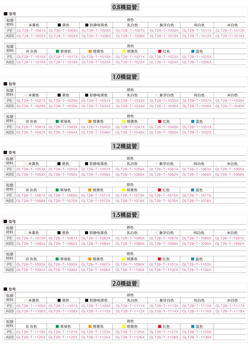 | 顏色 | 黑色,防靜電黑色,乳白,象牙白,純白,米白,灰色,草綠色,橙黃,明黃,紅色,藍(lán)色 | ||||